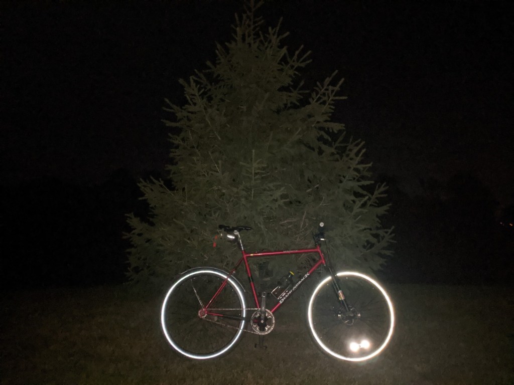 Coming back from my wrist injury, not much changed. The front tire changed back, and the handlebars as well. I actually used a slight wider version of the same Bontrager crowbar riser bars, and ergo grips because coming back after a broken wrist the old riser bars and grips just felt kind of off. This feeling continued to my other bikes and similar handlebar changes were made to my delivery and mountain bike.