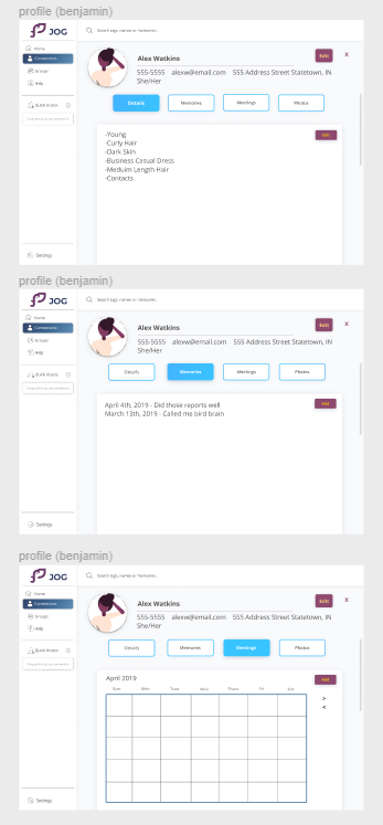 This project worked with the company Crema on their professional networking app called JOG. Throughout this project I dabbled in a lot of different aspects. I dipped my toes in both design and research with the Co Design Workshop. That was mostly the extent of my research though, because I did not have any connections of business people willing to let me interview them. I did get to work on a lot of the design process still, and tried to work well into the presentation parts because that is something I really enjoyed. Some highlights of my work are: