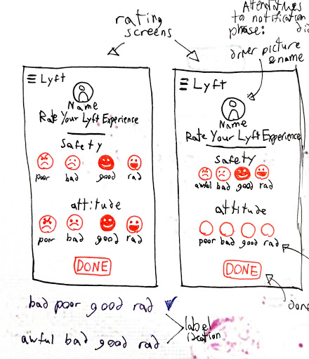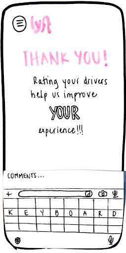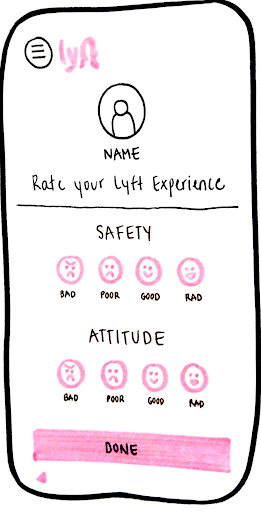 We tried to scope it down to make sure we were not biting off more than we could chew. we focused n the passenger rating the driver, and trying to accomplish a few things withing that. We wanted to humanize the driver, make the process speedy, and give the drier actual feedback to improve on.