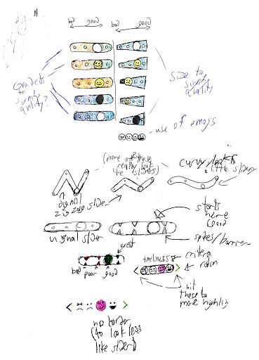 As we continued on with the process, we continued to ideate through different designs to design sliders, eventually we circled back to an idea that was close to the tapping, but with 4 points instead of 5 and using emojis.