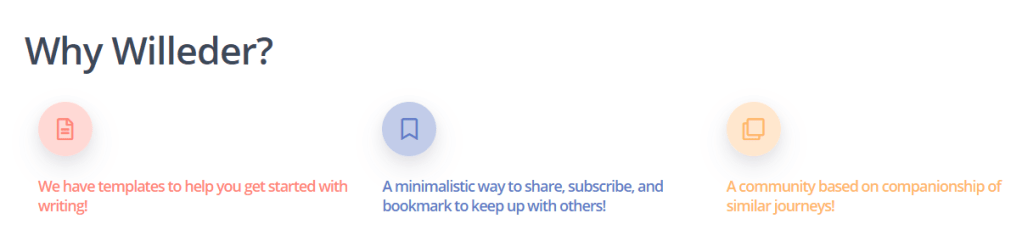 The vision the creator’s had for Willeder was a place where people could share their struggles and stories about their passions and careers. They wanted it to be defined by a couple key attributes that would make people want to share their stories here versus places like Instagram or LinkedIn